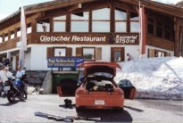 Zurück im Inntal nehmen wir die Inntalautobahn in Richtung Westen. Gut, dann halt nicht über den Brenner. Aber wohin dann? Reschen? Warum nicht. An Landeck vorbei beschließen wir noch unseren üblichen kleinen Abstecher über Spiess nach Samnaun zu machen (Dz:113). Im Zollanschlußgebiet der Schweiz gibt's billig Sprit, und wir füllen den sowieso schon recht leeren Tank für die Hälfte des Normalpreises. Da macht das Tanken noch Spaß. Immer noch ist das Ziel unserer Fahrt nicht geklärt.