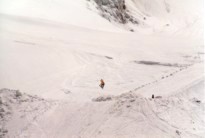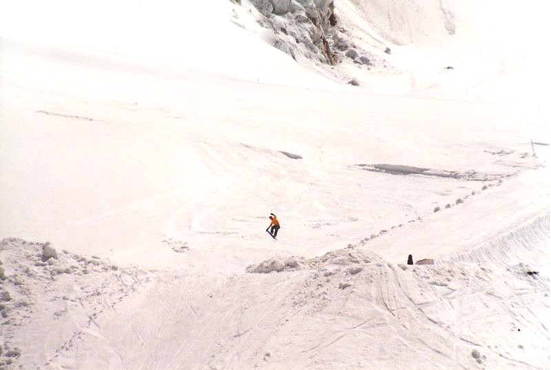 Das Skigebiet ist recht klein, aber wir sind ja immerhin im 'Tal' schon auf 2750m. Das Wetter ist gut. Die Sonne wird nur ab und zu von den vorbeiziehenden Wolken verdeckt.