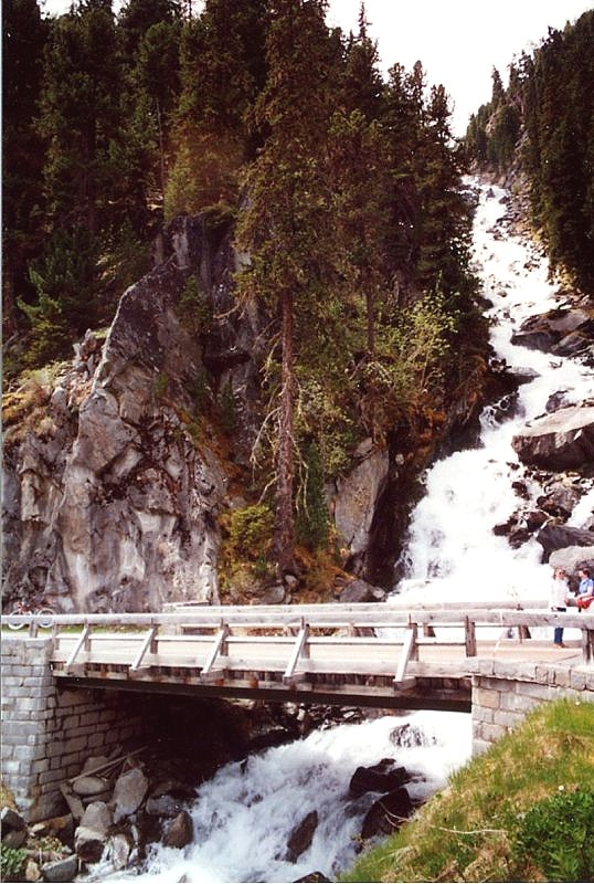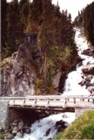 | Dort richten wir uns nach dem Hinweisschild zu Kaunertaler Gletscherstraße (Dz:112). Gleich hinter dem Ort steigt die Straße sanft und kurvig an. Nach einigen Kilometern erreichen wir das Kassenhäuschen. Na ja, nach den vergeudeten sechzehn Mark für den Brenner, spielen die 36 hier auch keine Rolle mehr ... Warum muß man in Österreich eigentlich für jede Straße extra bezahlen?! |