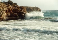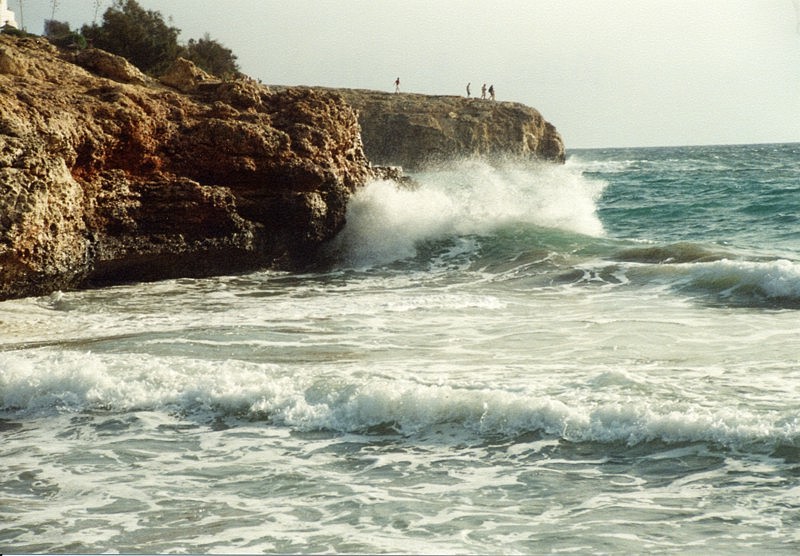 und in manchen sieht man Höhlen, die vom Wasser herausgewaschen wurden. |